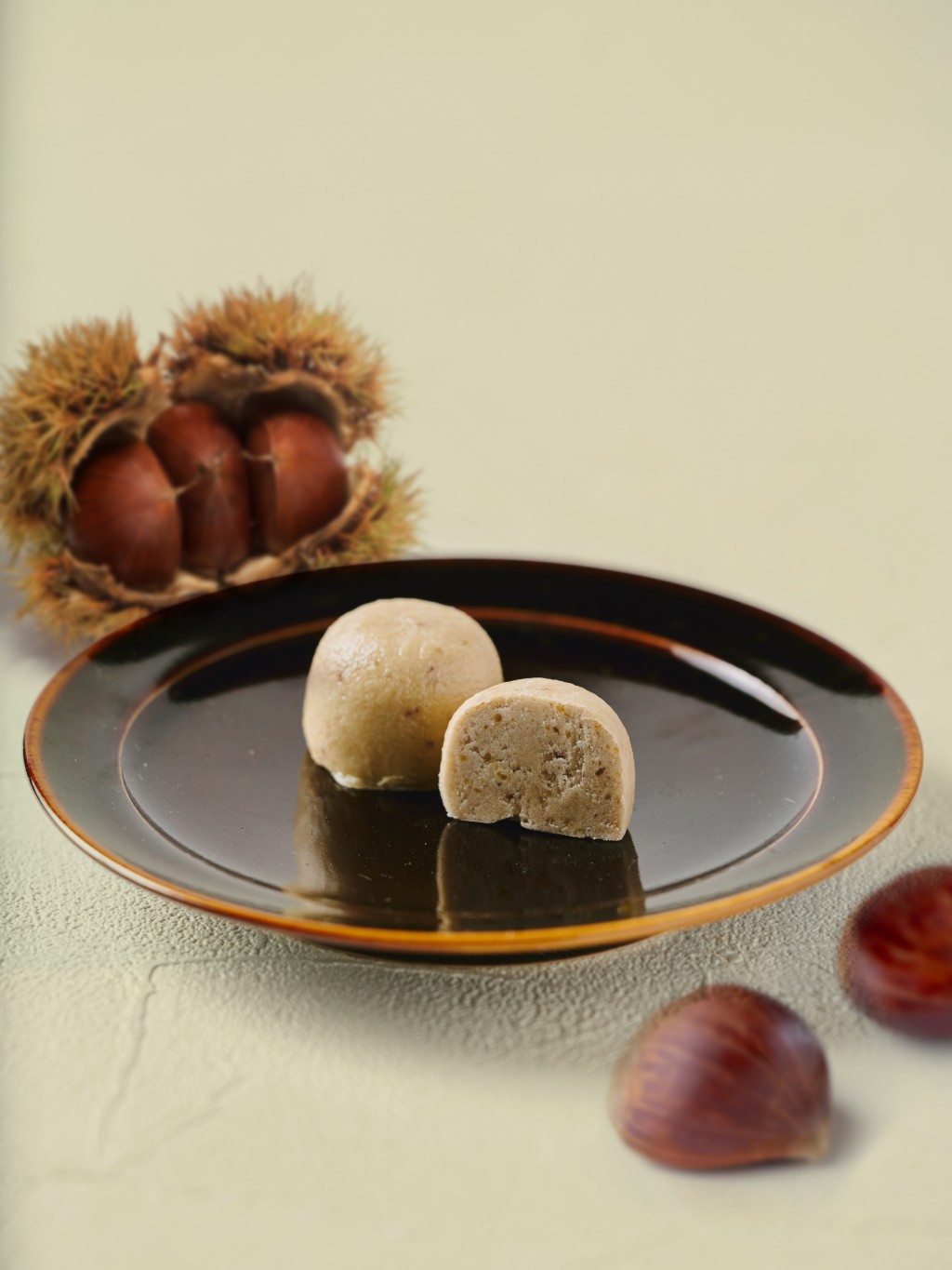 国産和栗とまろぶ餡で仕上げた栗の食感と風味を楽しめる秋限定のまんじゅうです。