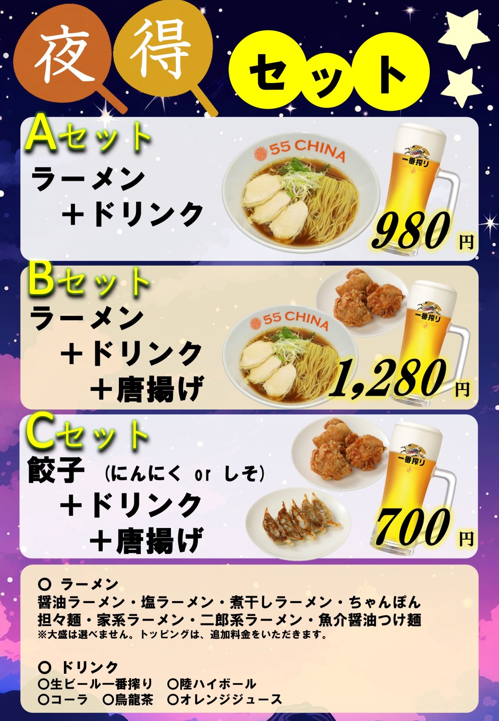 ラーメン、からあげ、餃子、ドリンク、お得に美味しく召し上がれ♪