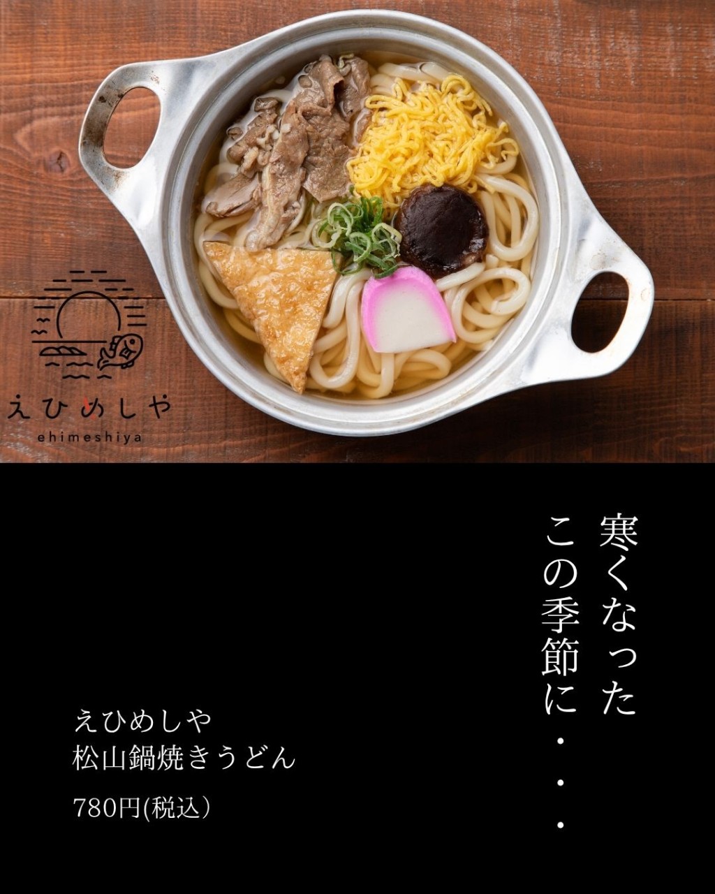 えひめしやの『松山鍋焼きうどん』を食べて、温まりませんか?
