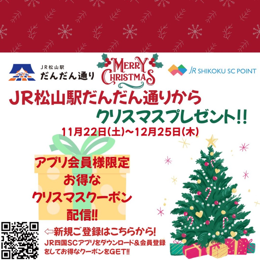 JR松山駅だんだん通りをいつもご利用いただいている皆さまへクリスマスプレゼント!!