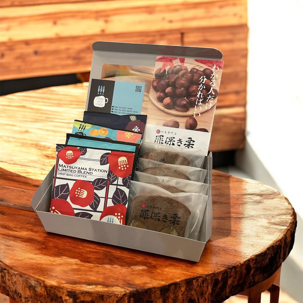 開催中【THREE FISH COFFEE】JR松山駅限定ドリップパックと栗のパウンドギフト
