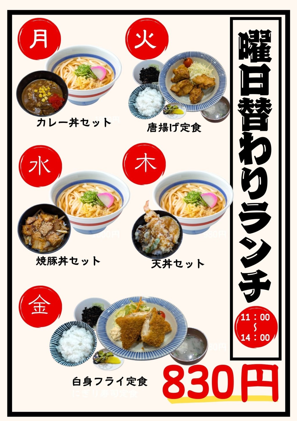 えひめしやでご好評いただいております、『平日限定』曜日替わりランチが1月5日(水)よりリニューアル。