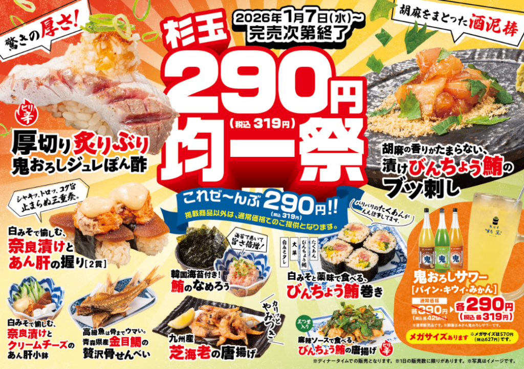 開催中【鮨 酒 肴 杉玉】杉玉290円均一祭