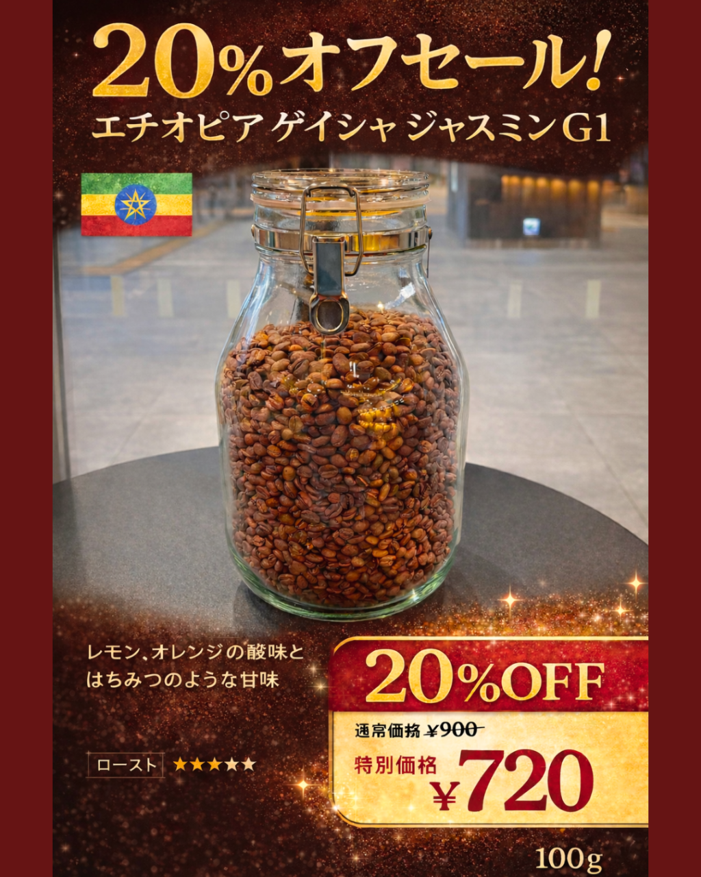 毎月オススメ珈琲豆は20%OFFで販売しますのでこの機会にぜひお試し下さい!☕✨ -