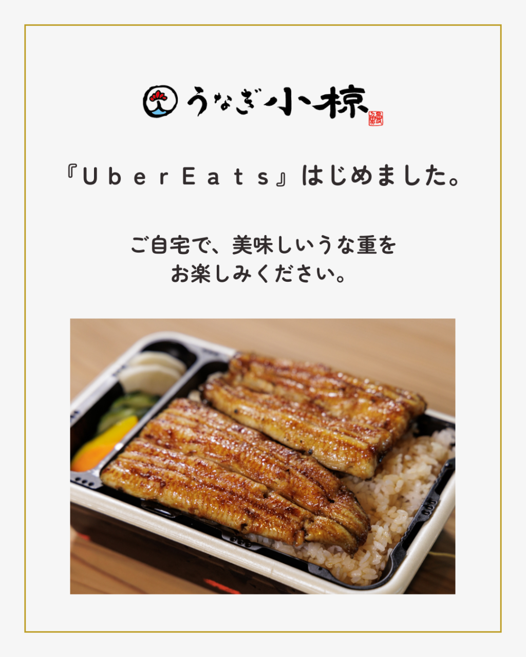 うなぎ小椋JR店でも、ウーバーイーツをご利用いただけるようになりました。
