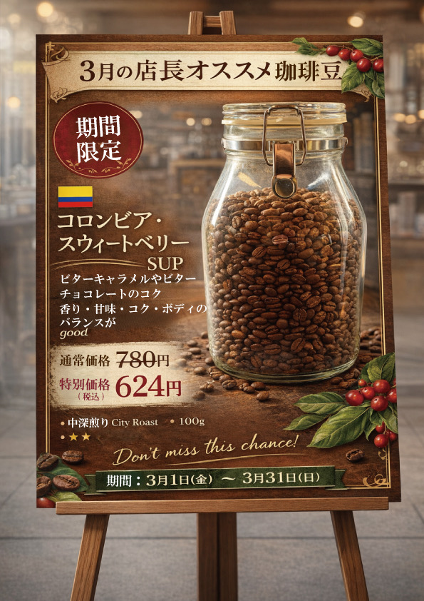3月の店長オススメ珈琲豆は、